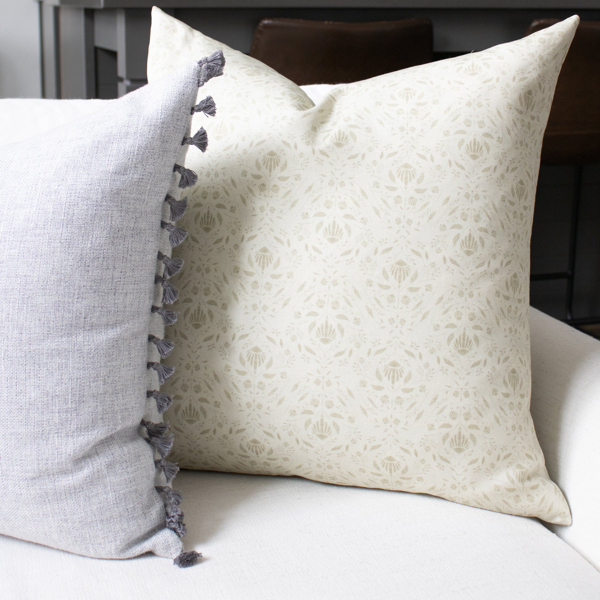 Soft, intricate, and elegant, Meadow in Wheat features a delicate, nature-inspired print in warm beige set against a soft cream background. This exclusive Notion Home print blends vintage charm with modern refinement, making it a versatile accent for any space.